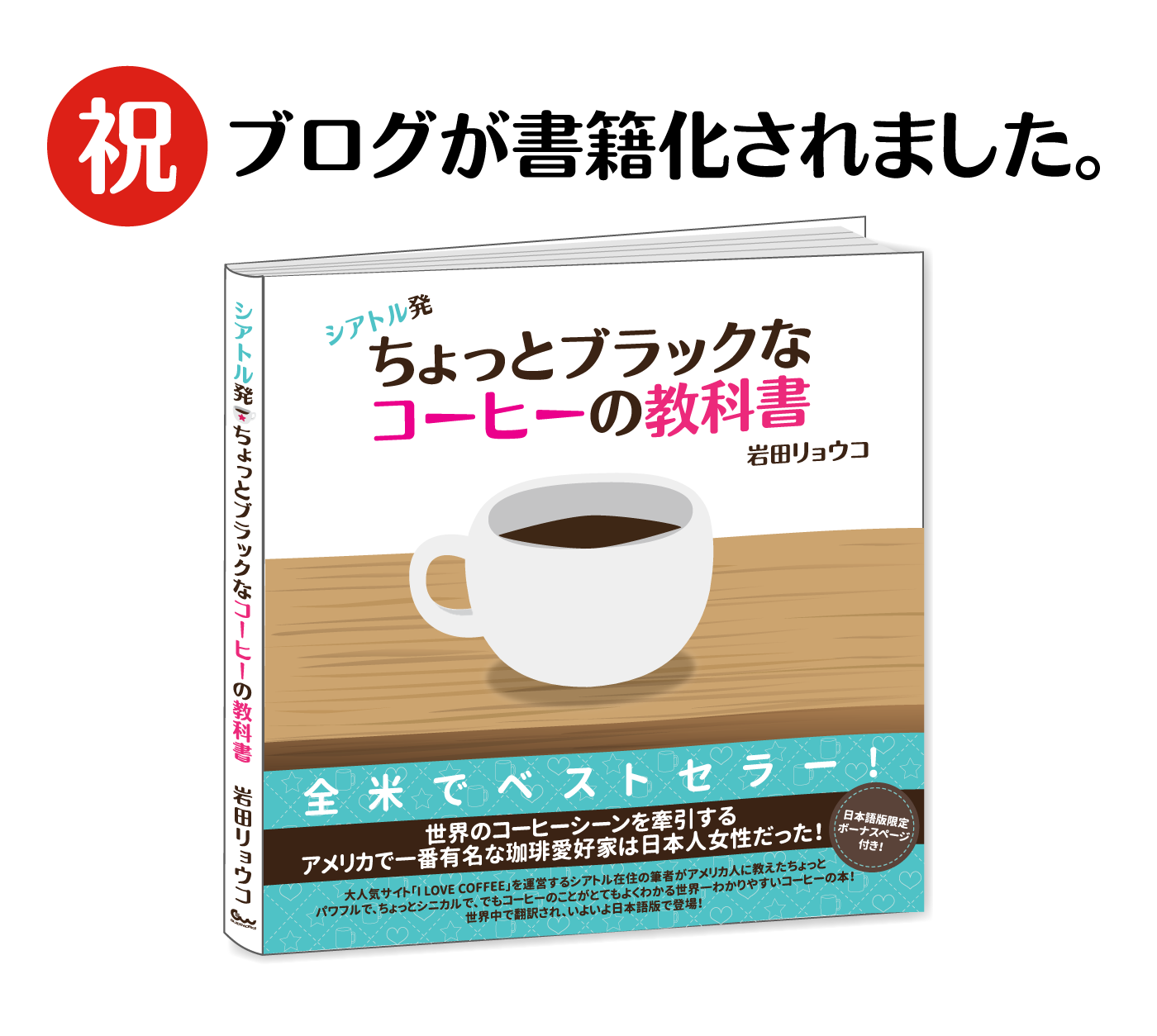 2015年にアメリカで出版した「Coffee Gives Me Superpowers」という大人のためのコーヒーの絵本が、ついに『シアトル発ちょっとブラックなコーヒーの教科書』として日本語でガイドワークスから出版されました。日本語版には日本語版限定のボーナスページも入ってます。(お買い得!)